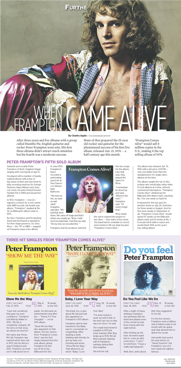 When Frampton Came Alive: His singles and 3 top albums “Frampton Comes Alive” would sell 8 million copies in the U.S., making it the top selling album of 1976.