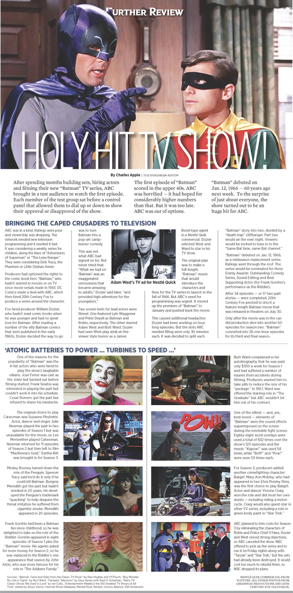 “Batman” debuted on Jan. 12, 1966 — 60 years ago next week. To the surprise of just about everyone, the show turned out to be an huge hit for ABC.