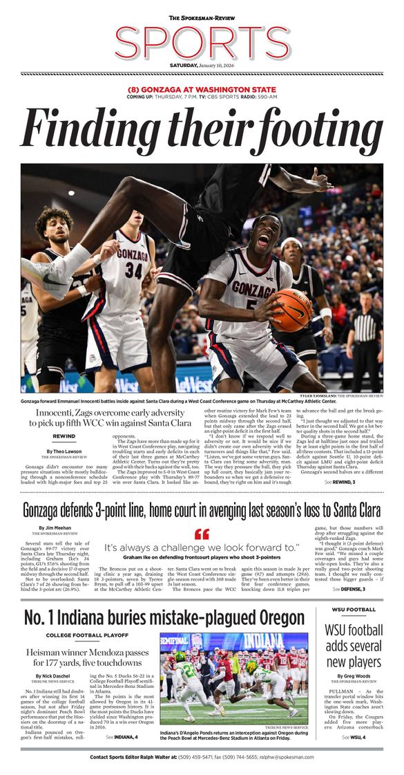 The Sports Front Page from Jan. 10, 2026