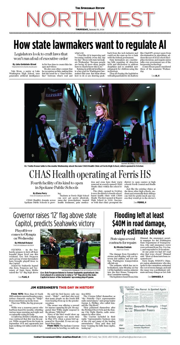 The Northwest Front Page from Jan. 15, 2026