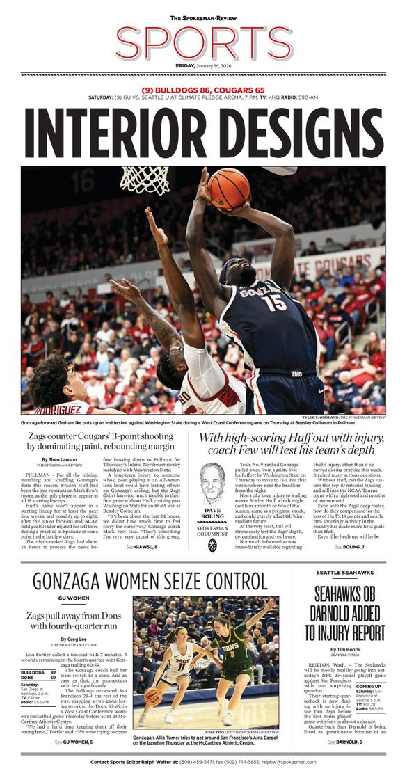The Sports Front Page from Jan. 16, 2026
