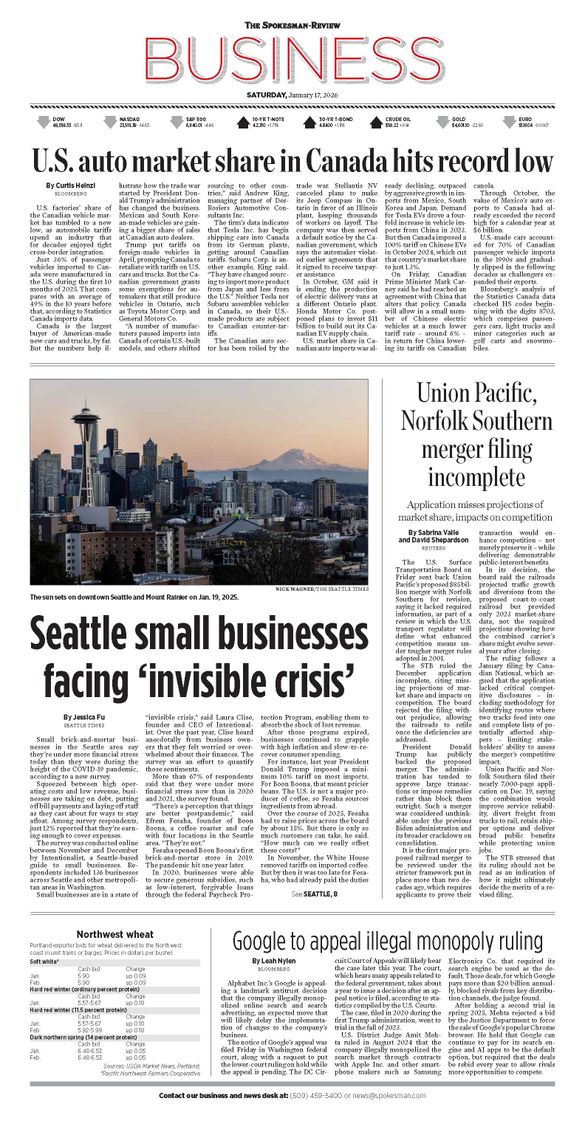 The Business Front Page from Jan. 17, 2026