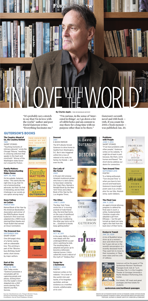 Guterson’s seventh novel and 13th book — 14th, if you count his 2001 e-book memoir — was published Jan. 20. He'll be heading to Spokane now to celebrate and start off his book tour.