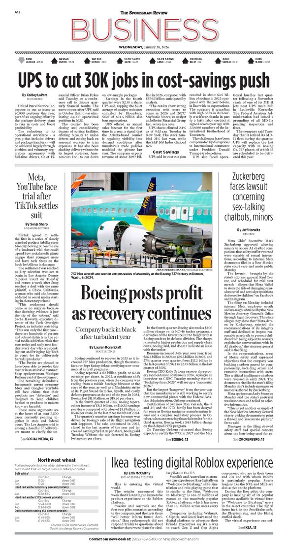 The Business Front Page from Jan. 28, 2026