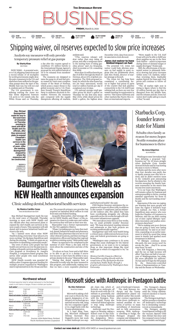 The Business Front Page from March 13, 2026