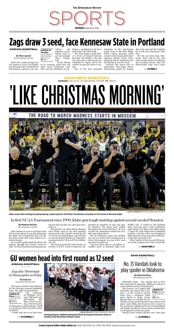 The Sports Front Page from March 16, 2026