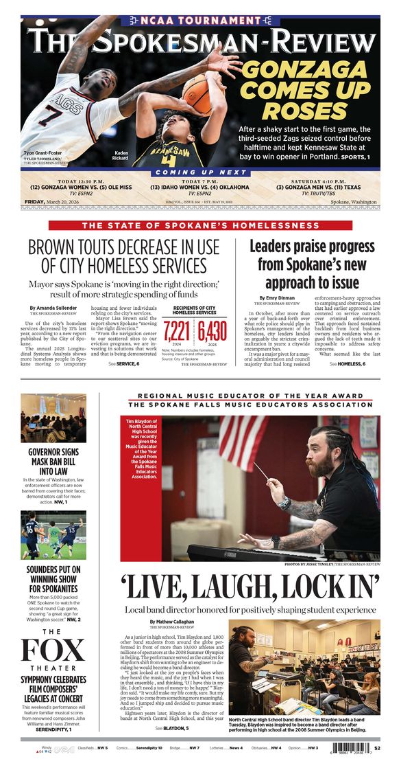 - Brown touts decrease in use of city homeless service, saying Spokane is ‘moving in the right direction’