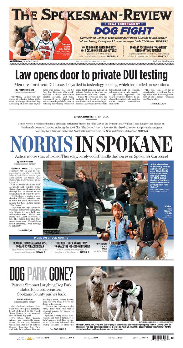 - Chuck Norris, action movie star who died Thursday, barely could handle the horses on Spokane’s carrousel