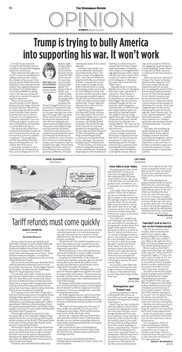 The Opinion Front Page from March 22, 2026