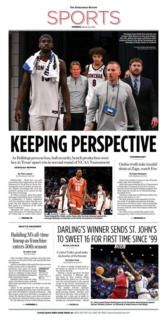 The Sports Front Page from March 23, 2026