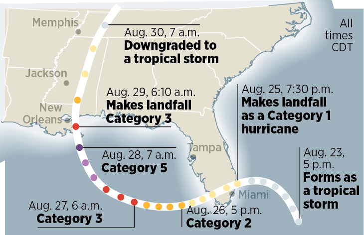 Katrina made landfall in Louisiana on Aug. 29, 2005 — 20 years ago Friday.