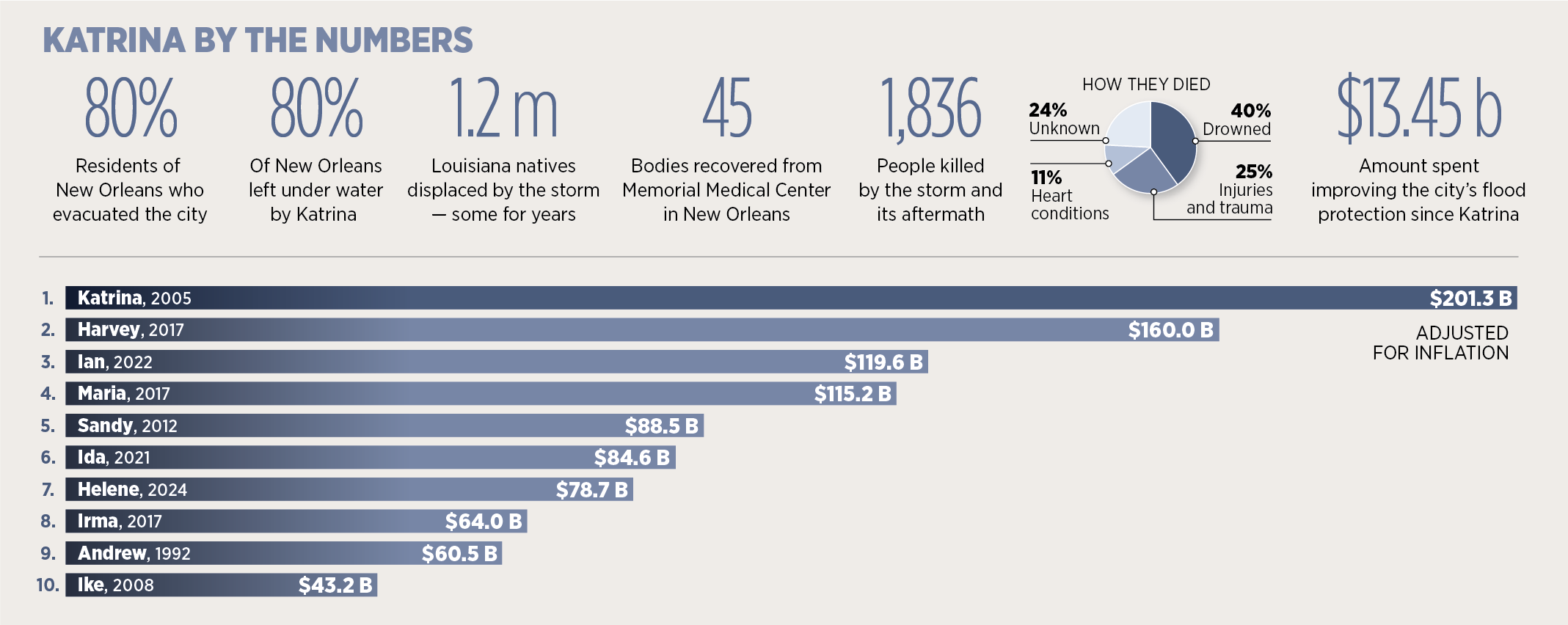 While Katrina was the fourth-most intense Atlantic hurricane to make landfall in the U.S., it’s by far the costliest in terms of property damage and economic impact to the region.