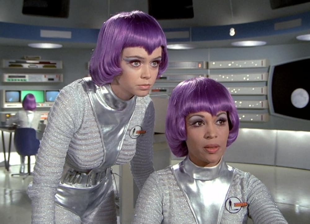 For reasons that were never explained on the show, the non-pilot residents of the moonbase were all females. And they all wore tight-fitting silver outfits, purple wigs and elaborate makeup. The male pilots did not.