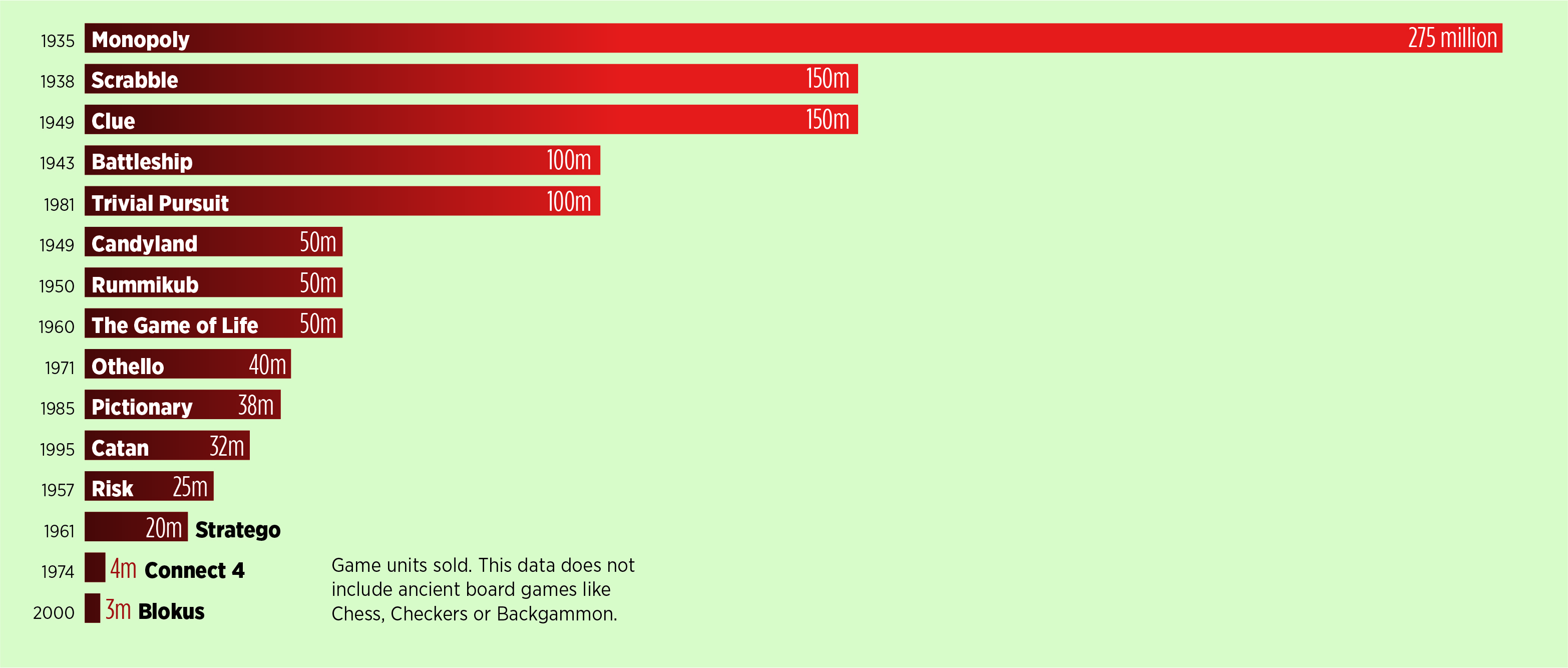 In 1933, Darrow patented his version of the game — which he called Monopoly — and began selling his handmade sets to friends and neighbors. Each set cost him about a dollar to make. He sold Monopoly for $2 a set. He soon increased his productivity by getting the black outlines and the text on the game boards printed. He’d then paint the colors by hand.