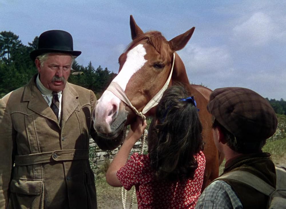 In the movie, Velvet’s horse is named “The Pie,” which is short for “Pirate.” But in the novel, “The Pie” is short for a piebald horse — “piebald” meaning having irregular markings of two colors. Playing The Pie was King Charles, a chestnut, rather than a piebald and the grandson of legendary racehorse Man o’ War and a first cousin of another famed racehorse, Seabiscuit.