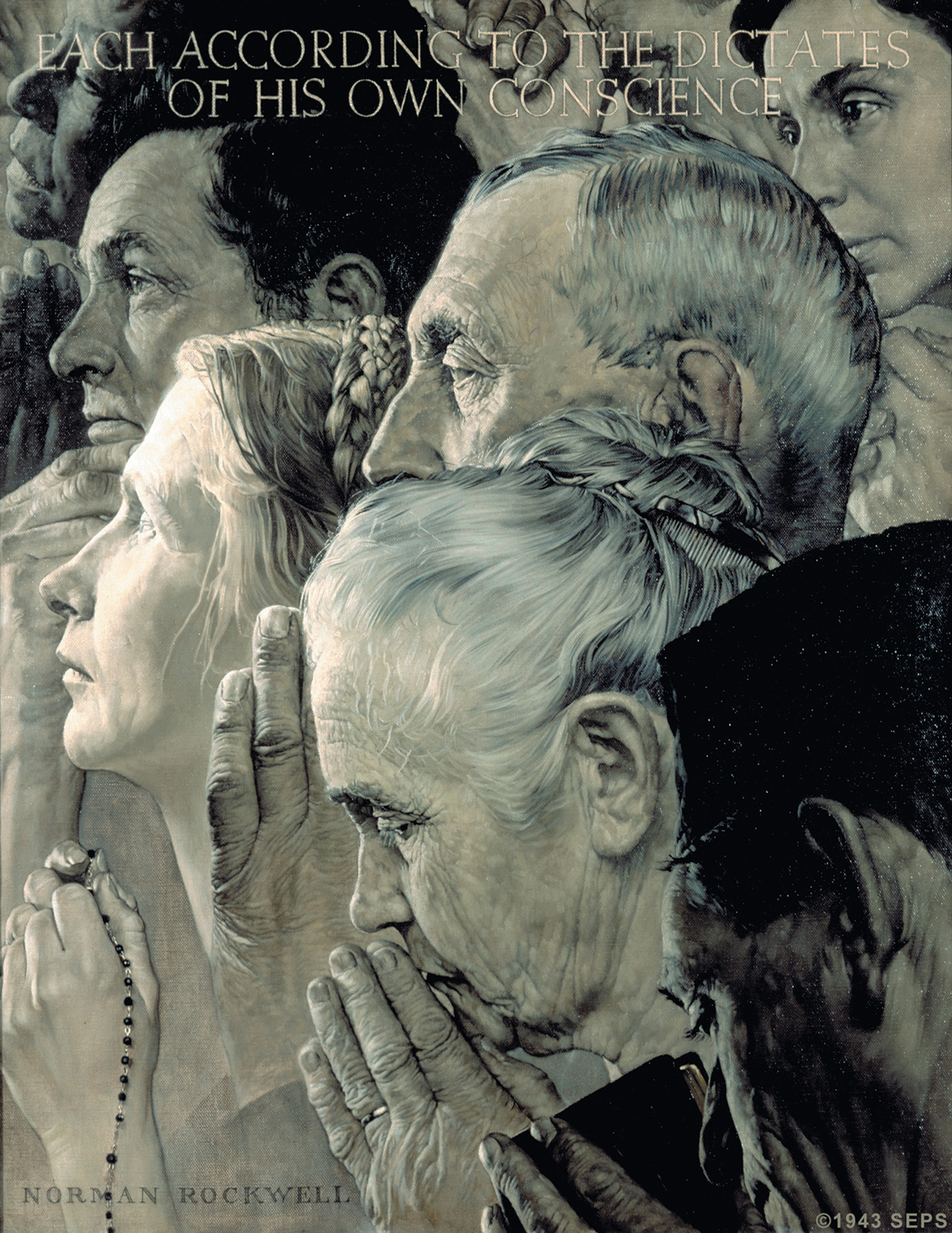 As he did for much of his work, Rockwell used friends and neighbors around his studio in Arlington, Vermont, as models. The paintings accompanied thoughtful articles about each of the freedoms Roosevelt had listed.