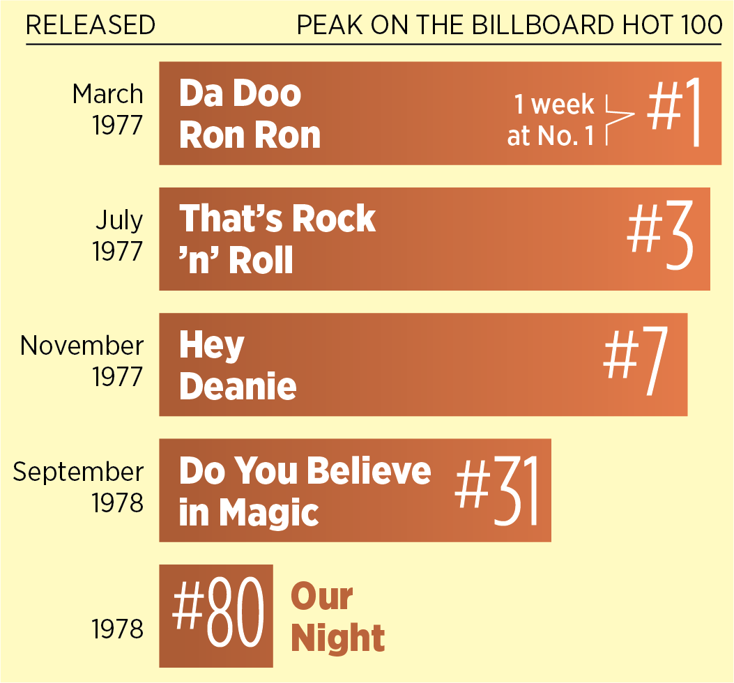 That self-titled album, released in June 1977, contained Cassidy’s version of the old Crystals hit from 1963, “Da Doo Ron Ron.” It would become a No. 1 hit. Warner followed that up with a U.S. release of “That’s Rock ’n’ Roll,” which then peaked at No. 3.
