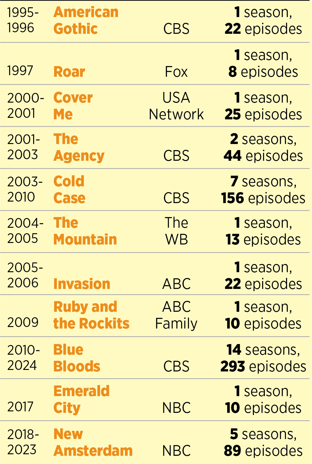 Selected TV Series That Cassidy Either Created, Produced, Or Wrote