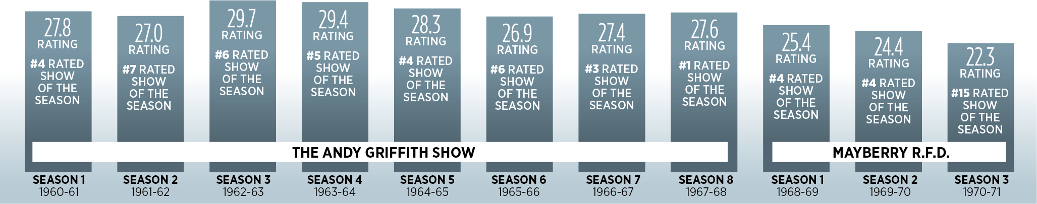 Griffith decided after eight seasons to move on to other projects. Eager to keep his series alive, CBS was careful to have Griffith’s goodbyes overlap with the introduction of Ken Berry as the star of “Mayberry R.F.D.”