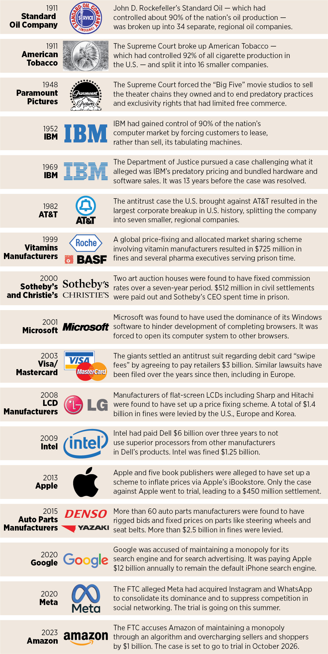 The History Oasis web site compiled a list of landmark antitrust actions taken over the past 114 years.