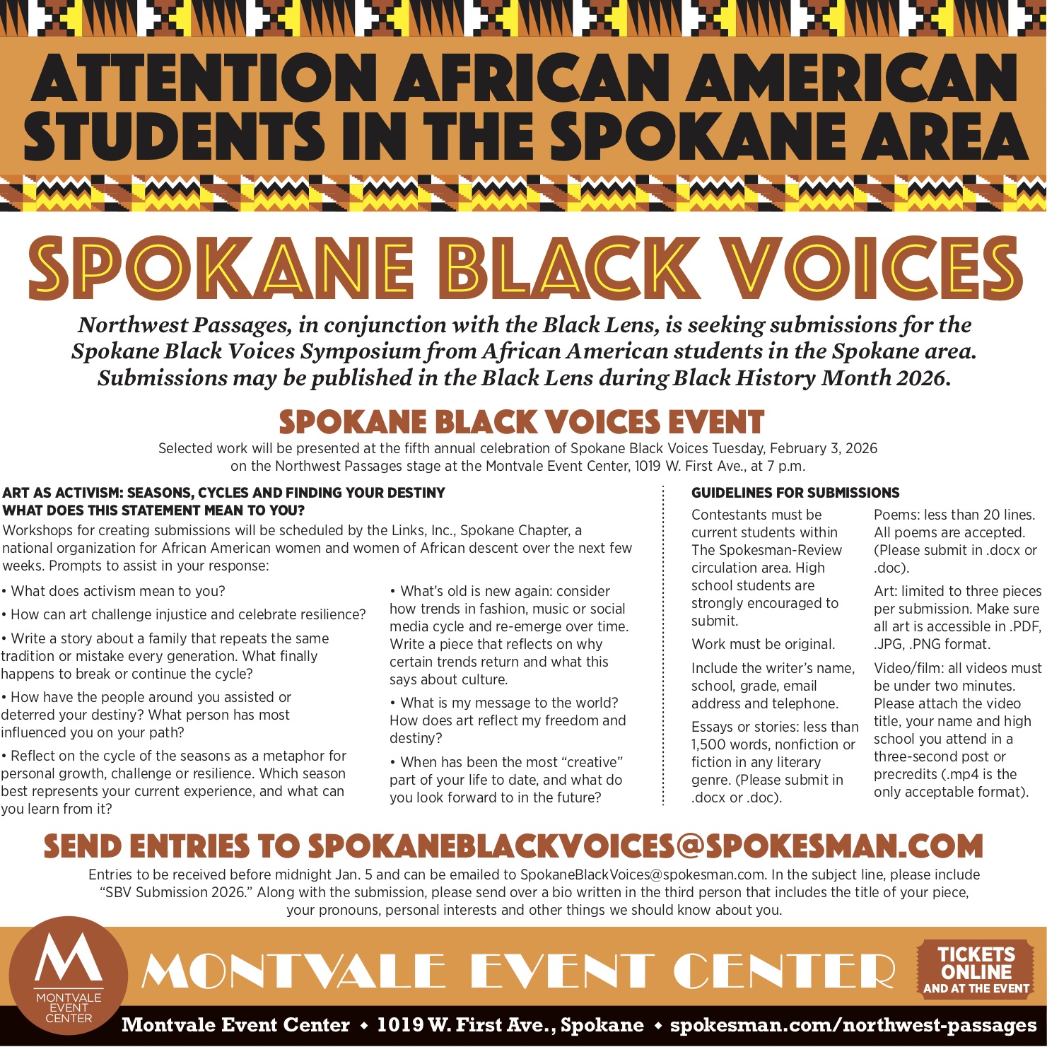 Workshops for creating submissions will be scheduled by the Links, Inc., Spokane Chapter, a national organization for African American women and women of African descent over the next few weeks.