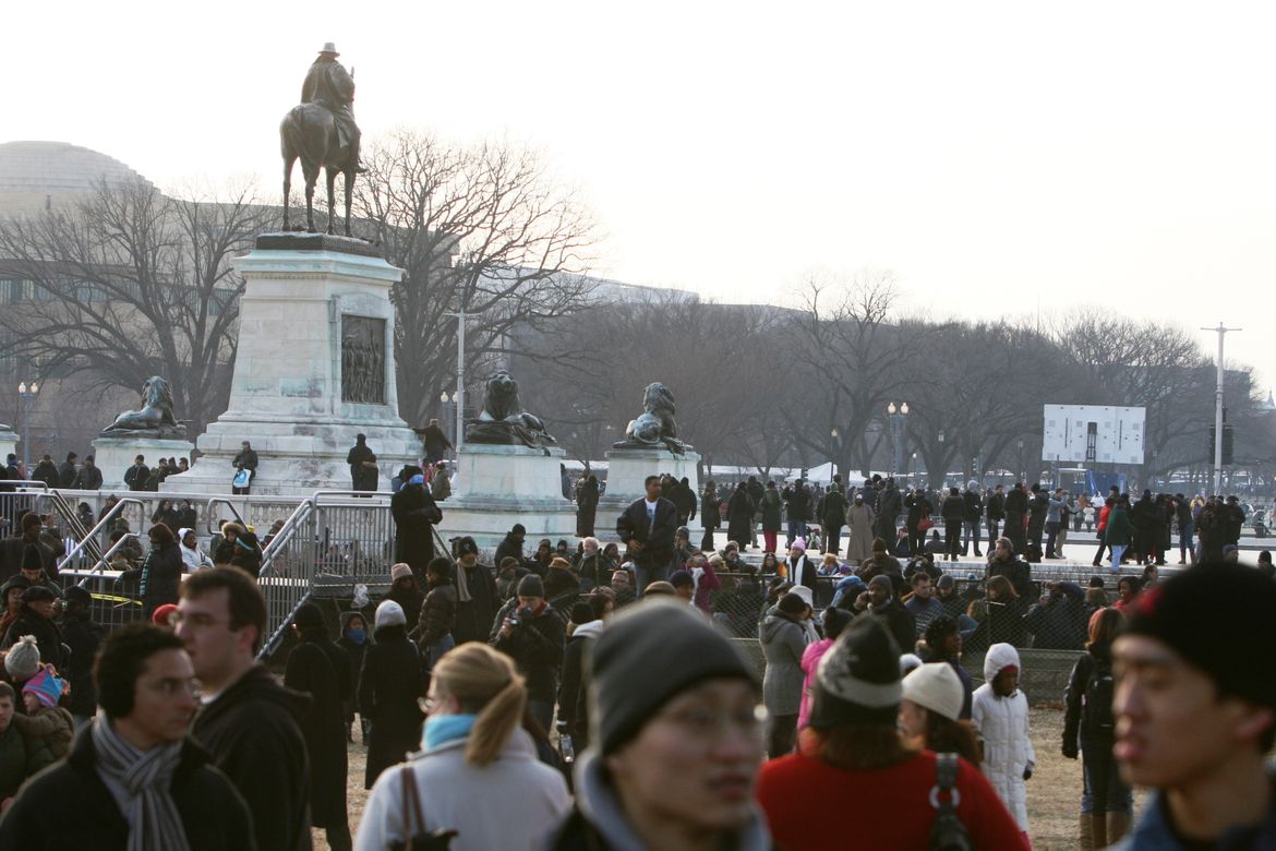 People mill around the National Mall on Monday, Jan. 19, 2009, the day before Barack Obama's inauguration.