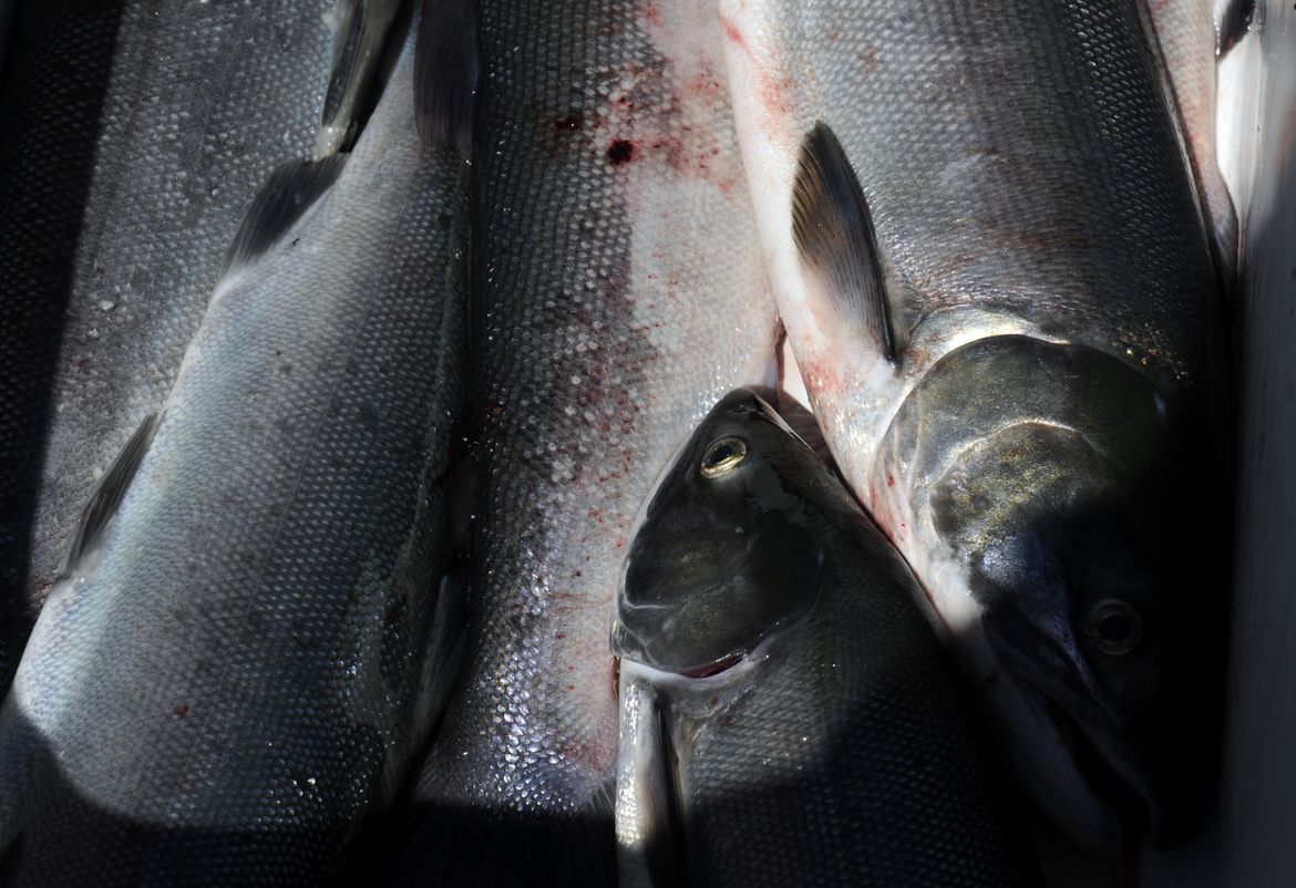 Sockeye salmon ride home in a fisherman’s cooler from the Brewster Pool, the stretch of the Columbia River near Brewster, Wash., on July 22. Sockeye are generally smaller than other varieties but still popular for their flavor.