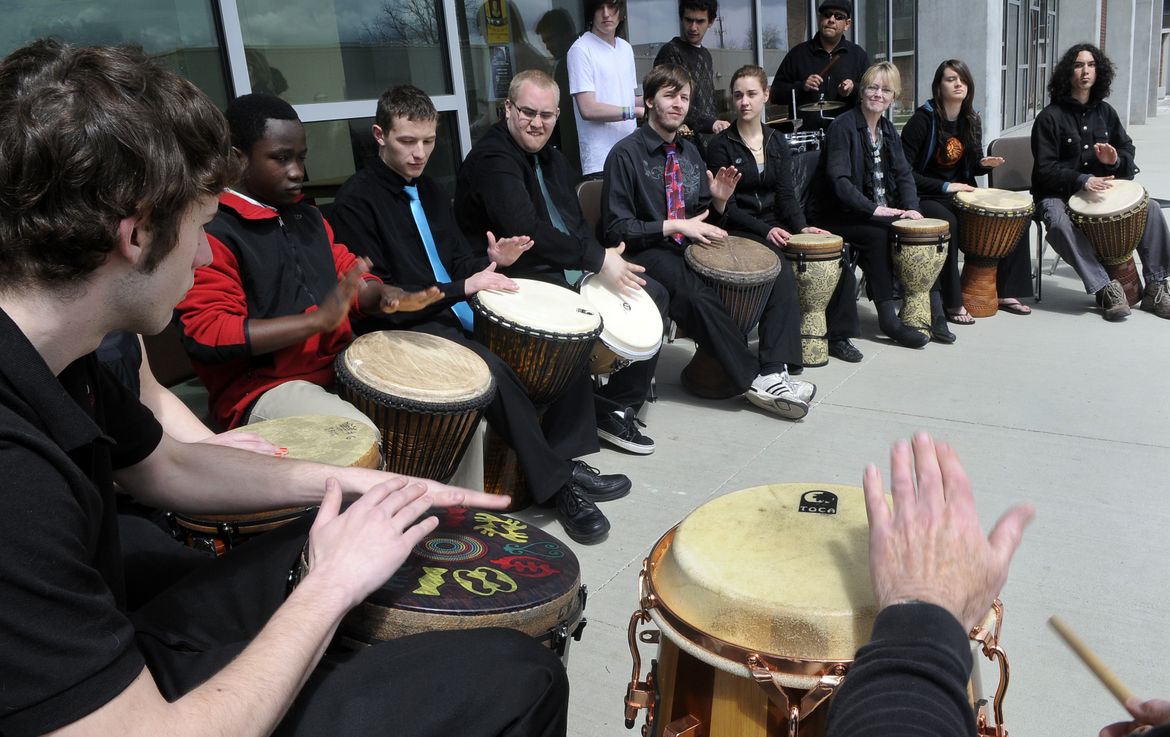 Acoustic remake: Spokane Falls World Drumming Ensemble members perform a pre-show for the dedication of Spokane Falls Community College’s renovated, 47,571-square-foot music building Tuesday. The structure, costing nearly $15 million, features a digital lab, recording studio and two studio rooms with spring-loaded floating floors for sound insulation. Read more about the new building in the Here’s the Dirt column on Friday’s Business page.