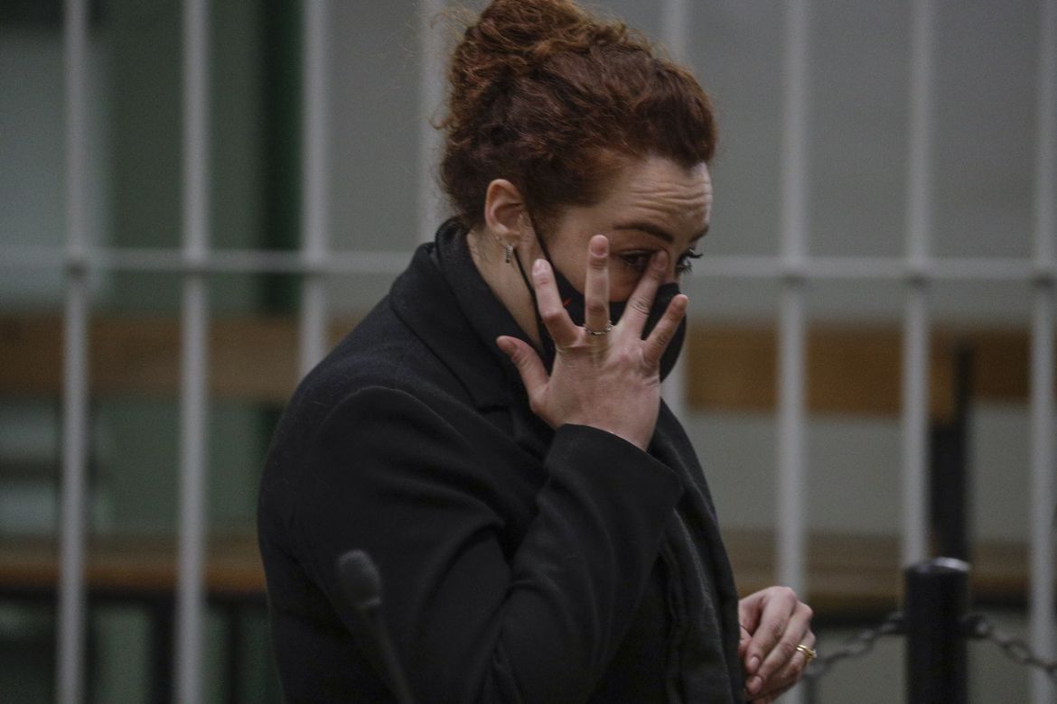 Rosa Maria Esilio, right, widow of Italian Carabinieri paramilitary police officer Mario Cerciello Rega, waits for the verdict to be read in the trial in which two American tourists are accused of murdering her husband, in Rome, Wednesday, May 5, 2021