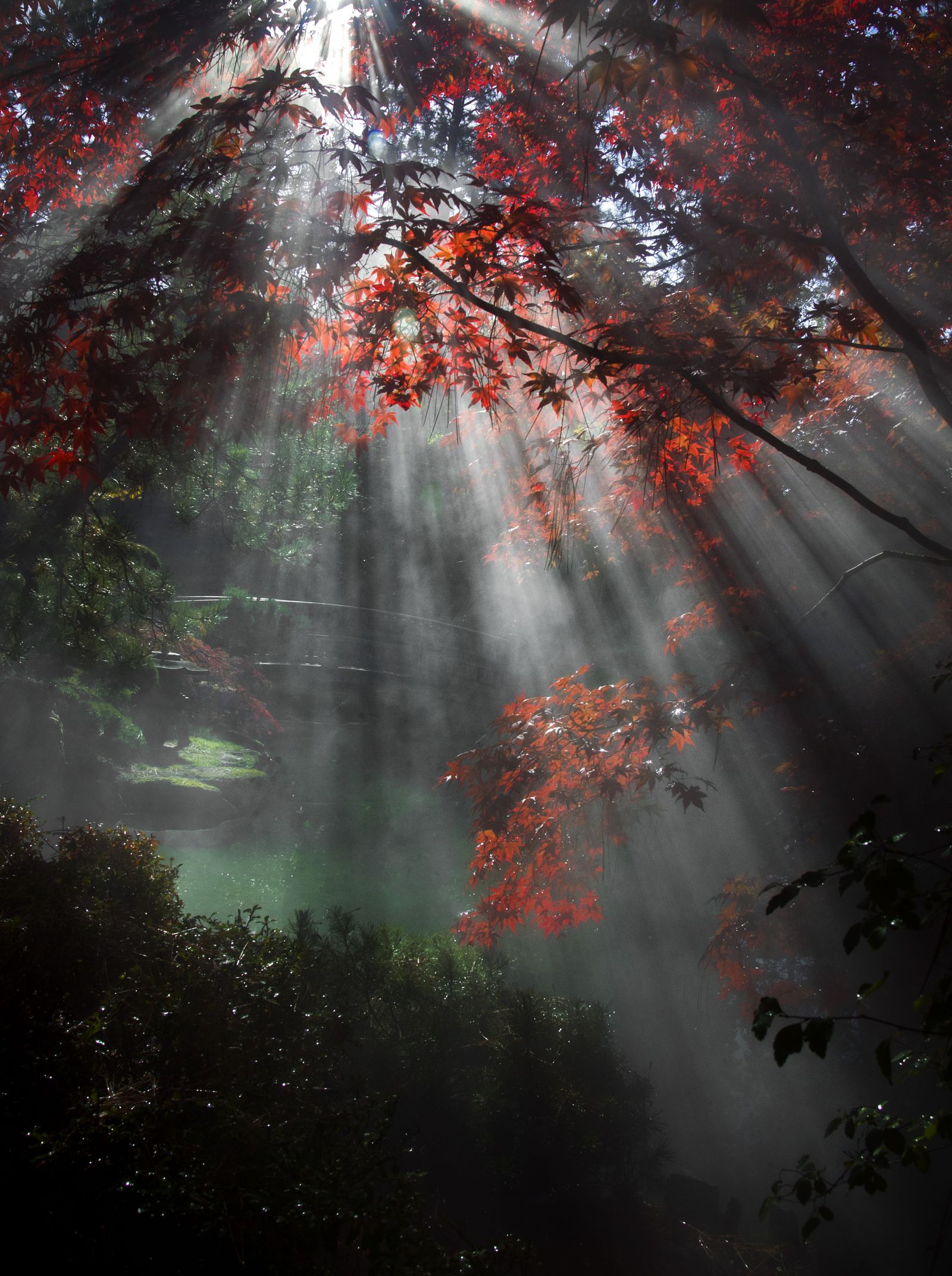 A mist dissipates through Manito Park’s Japanese Gardens as maintenance workers vent the sprinkler system in preparation for closing the garden for the coming winter Thursday, Oct. 18, 2012, in Spokane, Wash.