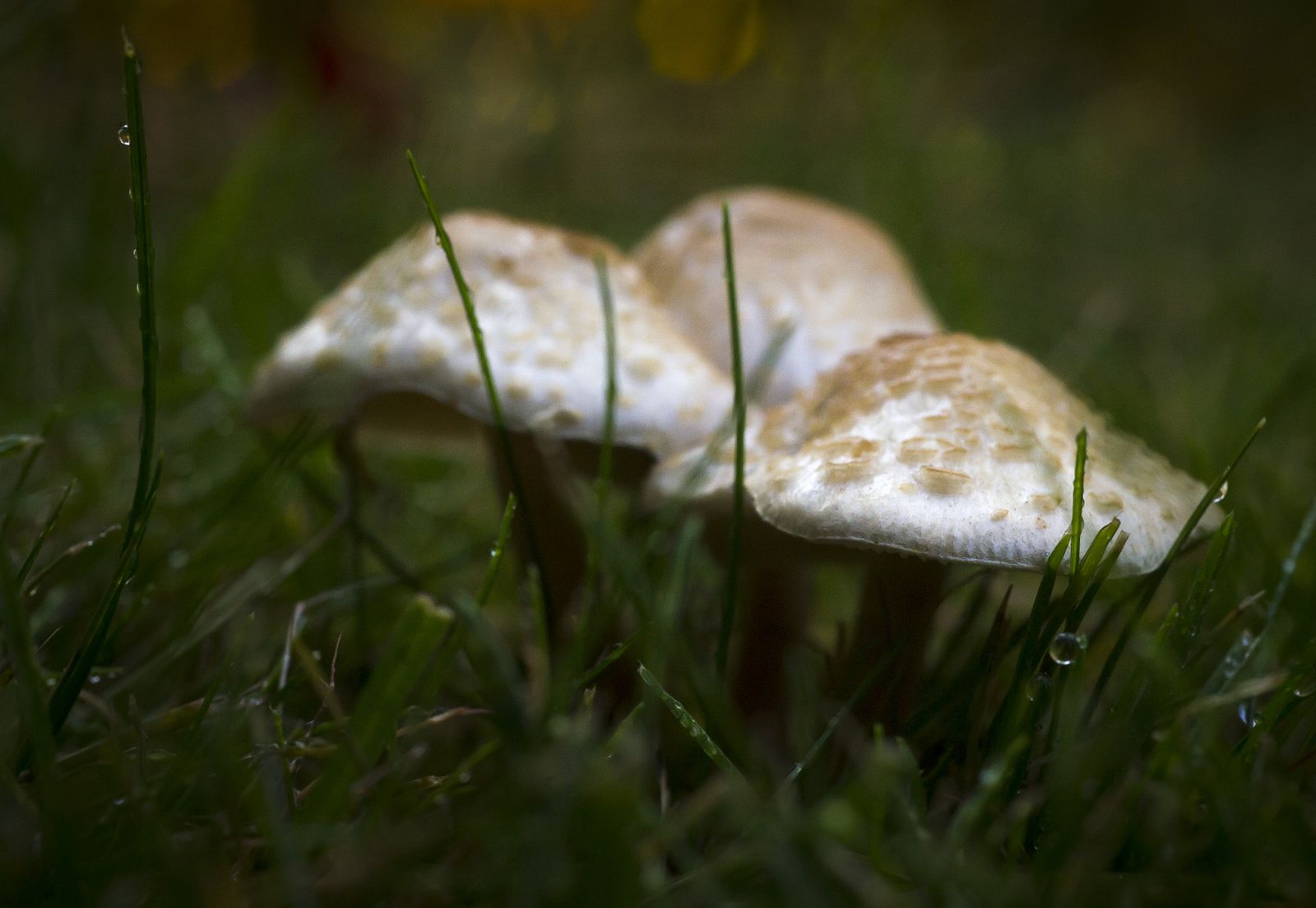 Wild mushrooms sprout in the grass of Manito Park’s Japanese Gradens Thursday, Oct. 18, 2012, In Spokane, Washington.