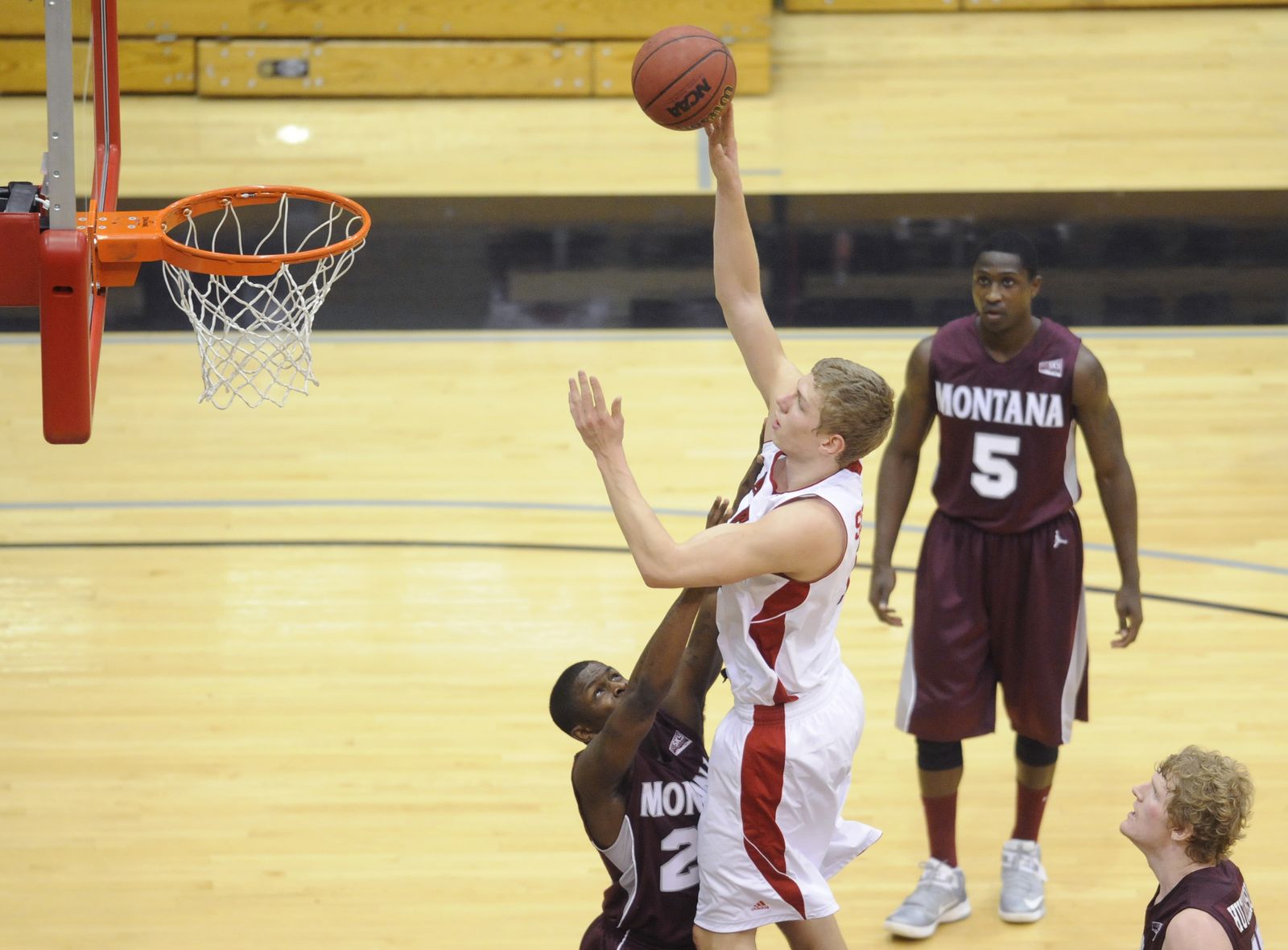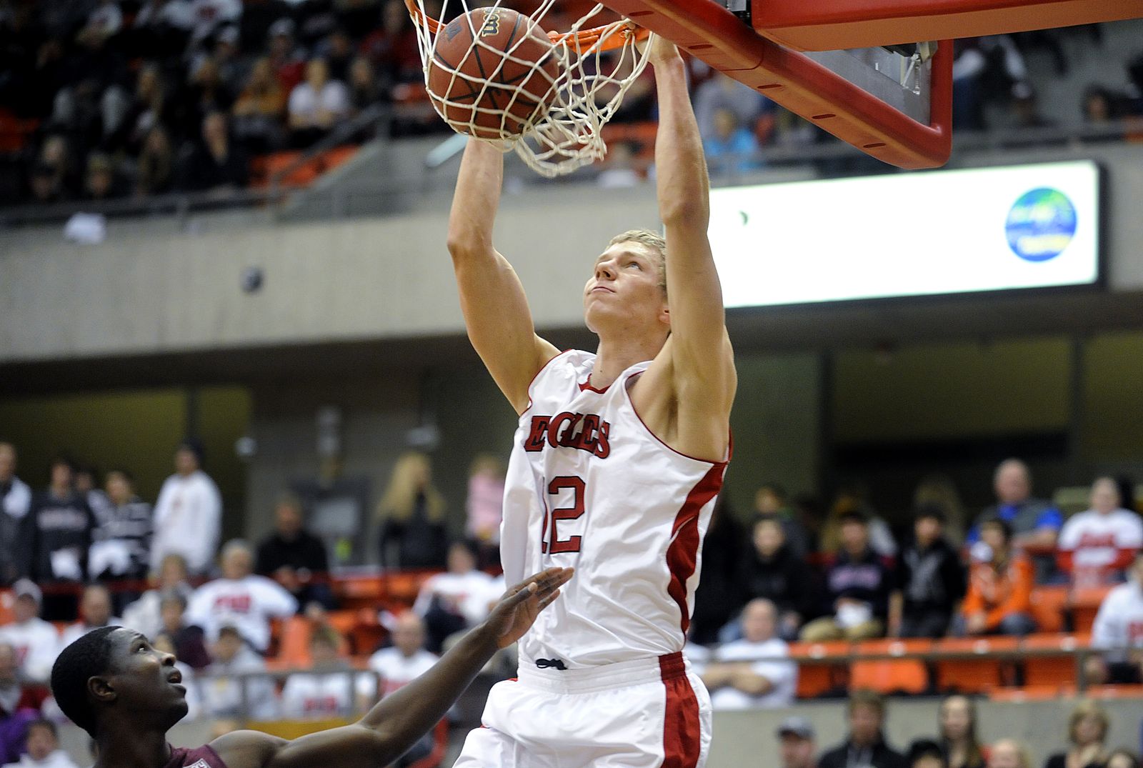 Eastern forward Martin Seiferth (12) dunks over Montana during the first half.