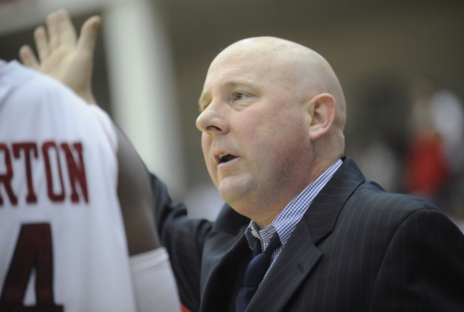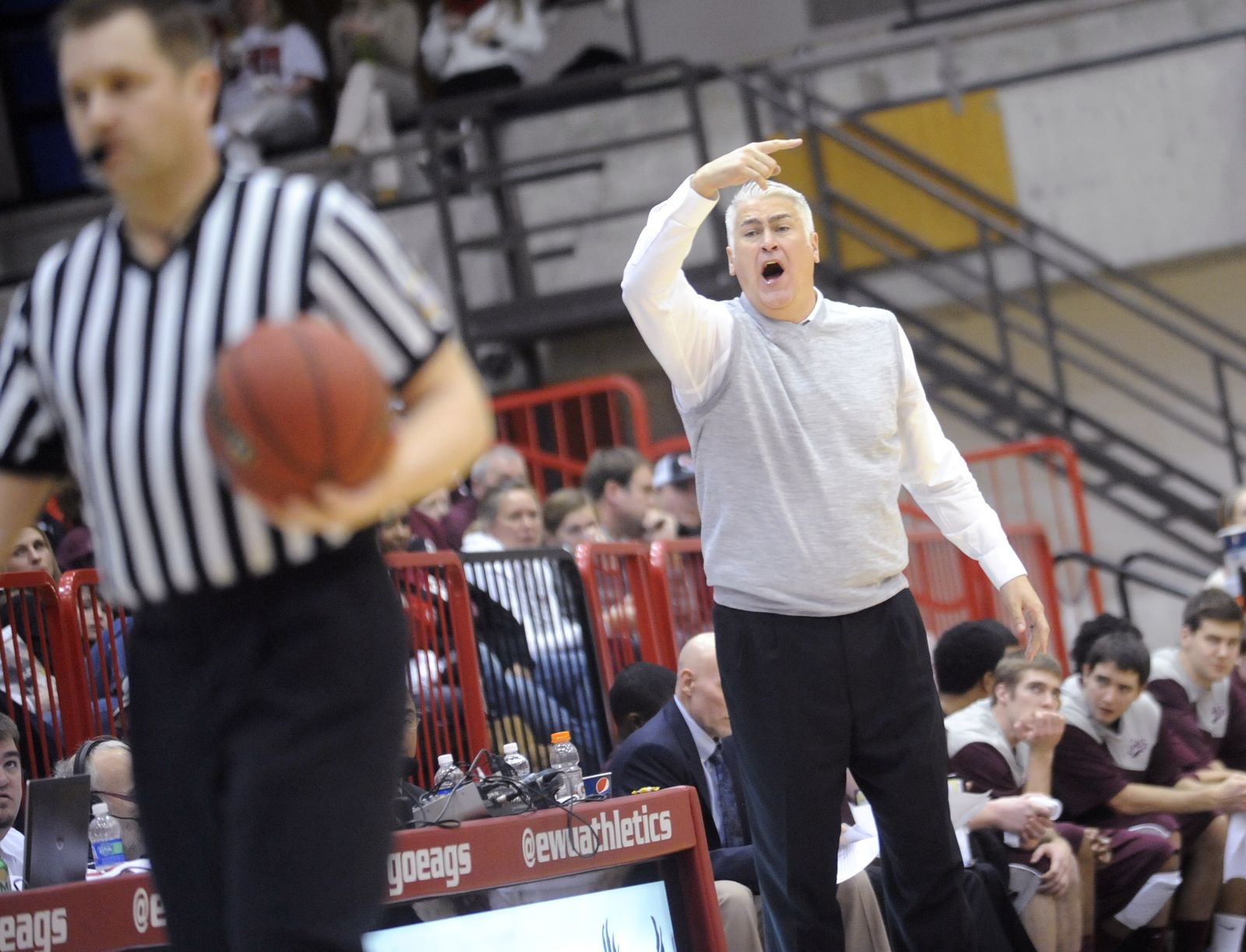 Eastern head coach Jim Hayford rallies his team during a timeout against Montana during the second half.