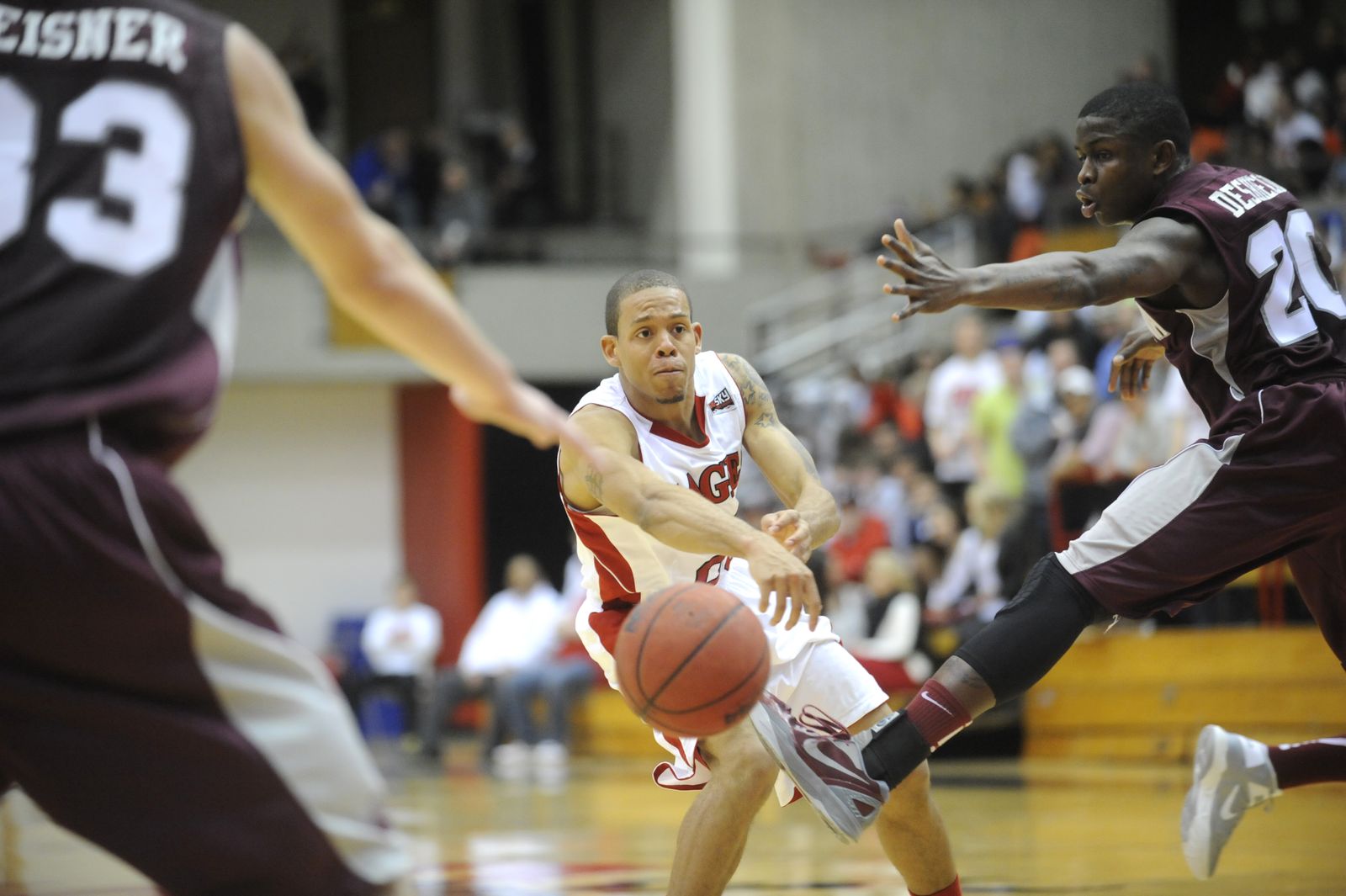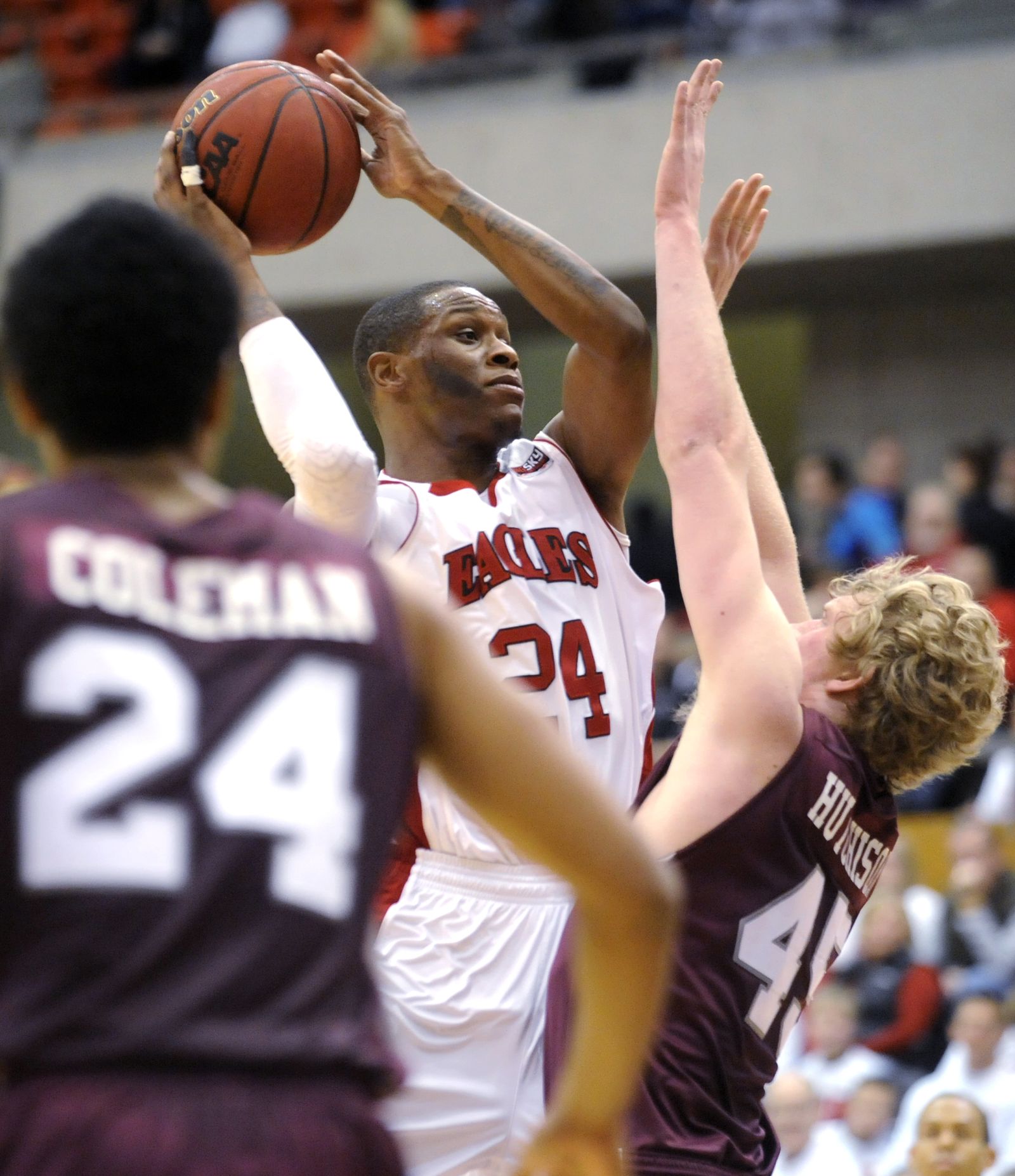 Eastern guard Kevin Winford (23) passes the ball against Montana during the second half.