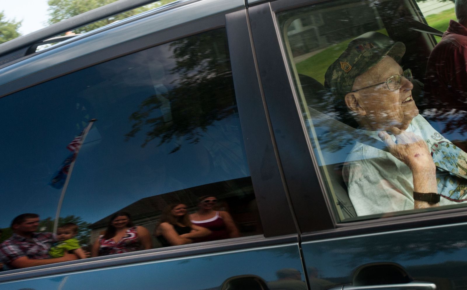 95-year-old Jerry Weed, was all smiles heading home on Friday, July 4, 2014, in Spokane, Wash.