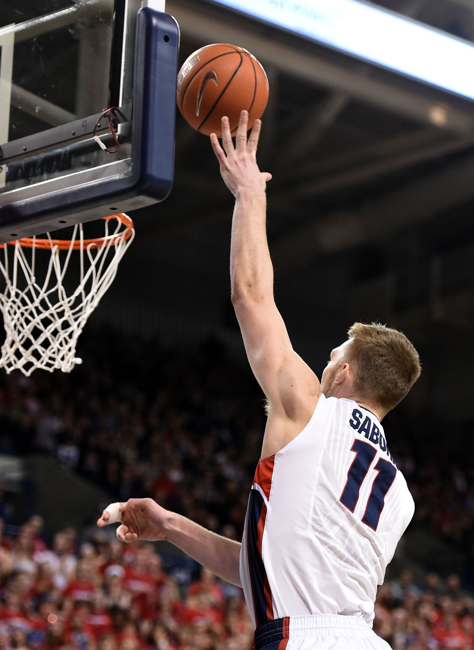 Gonzaga forward Domantas Sabonis (11) lays the ball up in the first half of an NCAA men’s college basketball game, Sat., Feb. 28, 2015, in the McCarthey Athletic Center.
