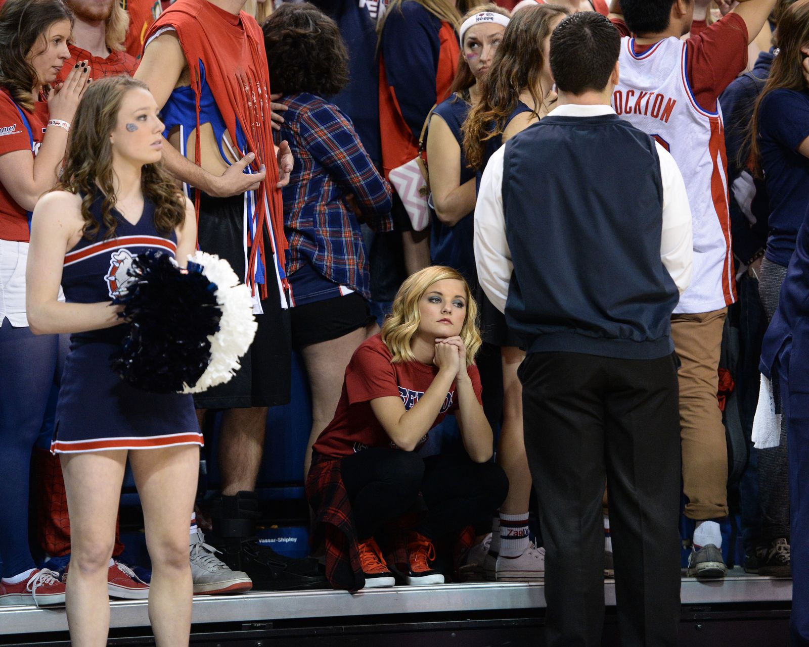 With1.5 seconds left in the game, a Gonzaga student waits for a timeout and the game to be over., Feb. 28, 2015, in the McCarthey Athletic Center.