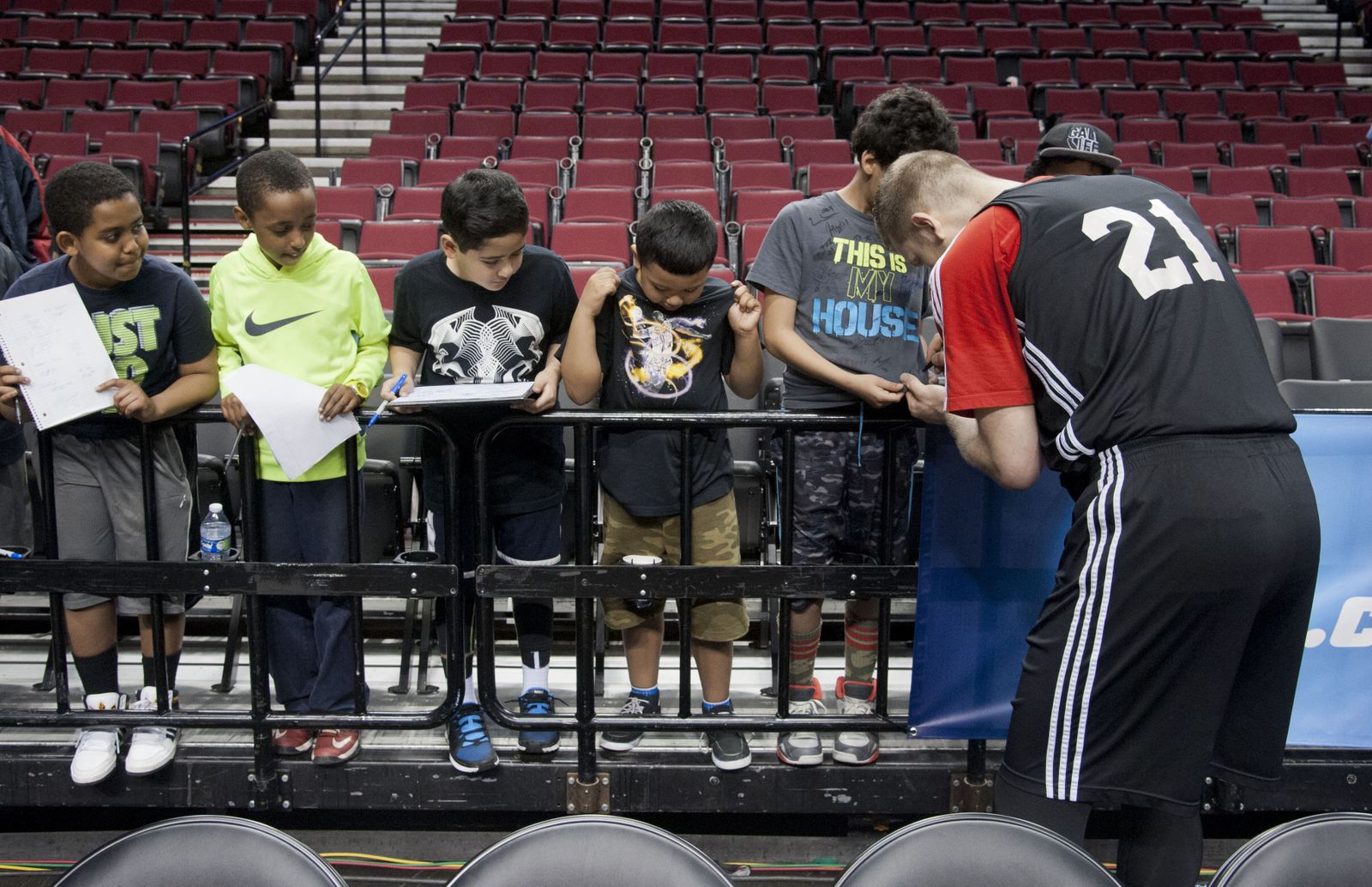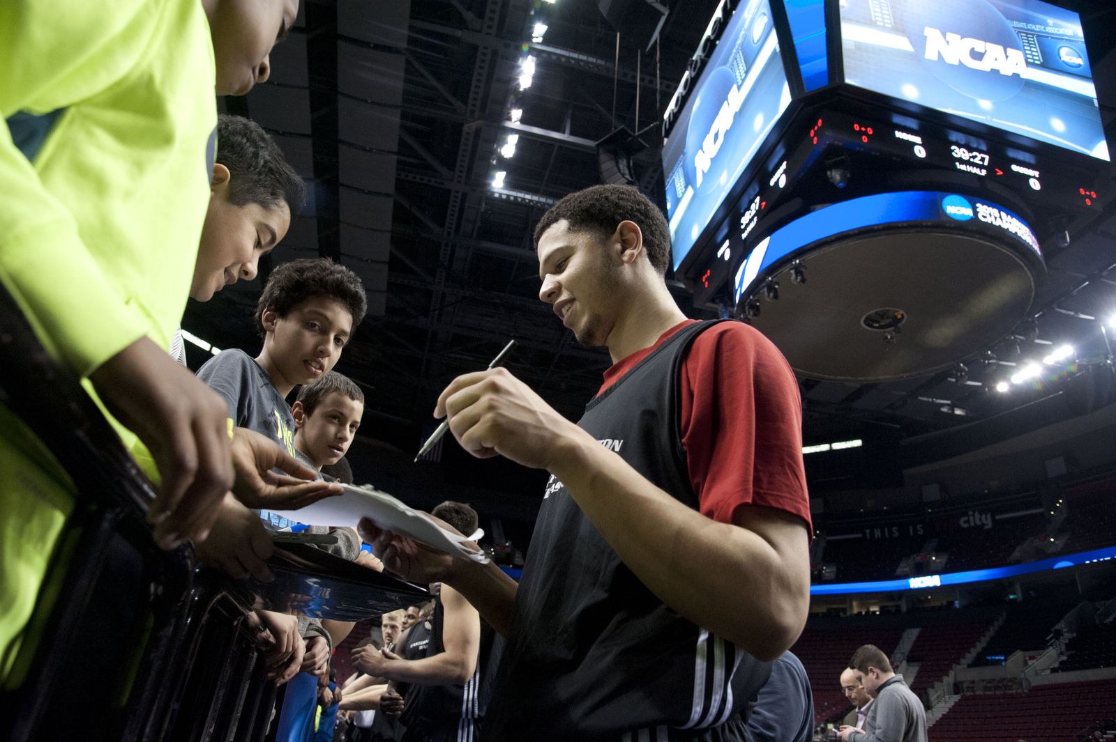 EWU’s Tyler Harvey signs autographs for local children after his team’s practice session, March 18, 2015, in Portland’s Moda Center.