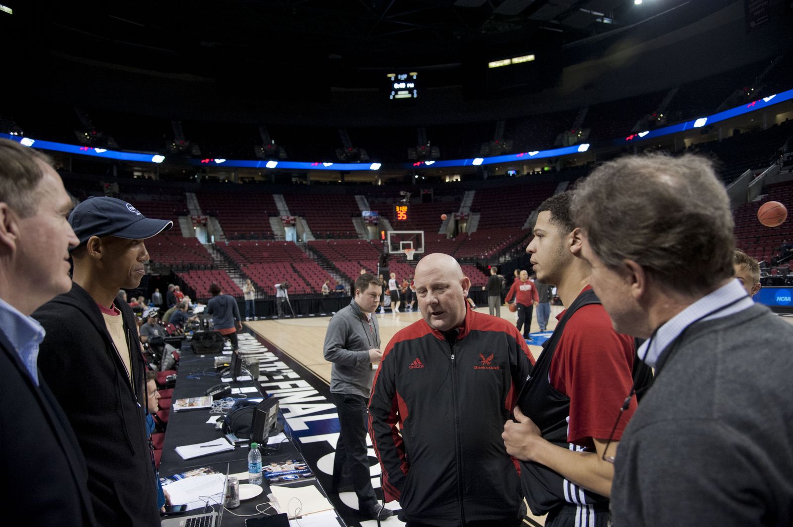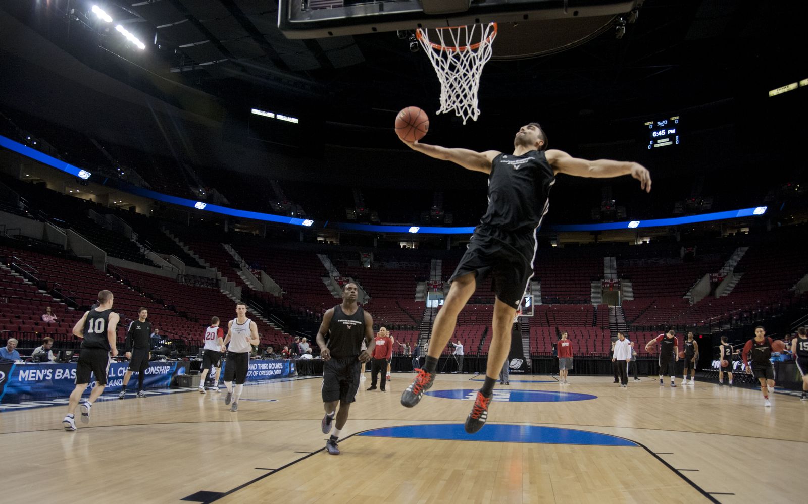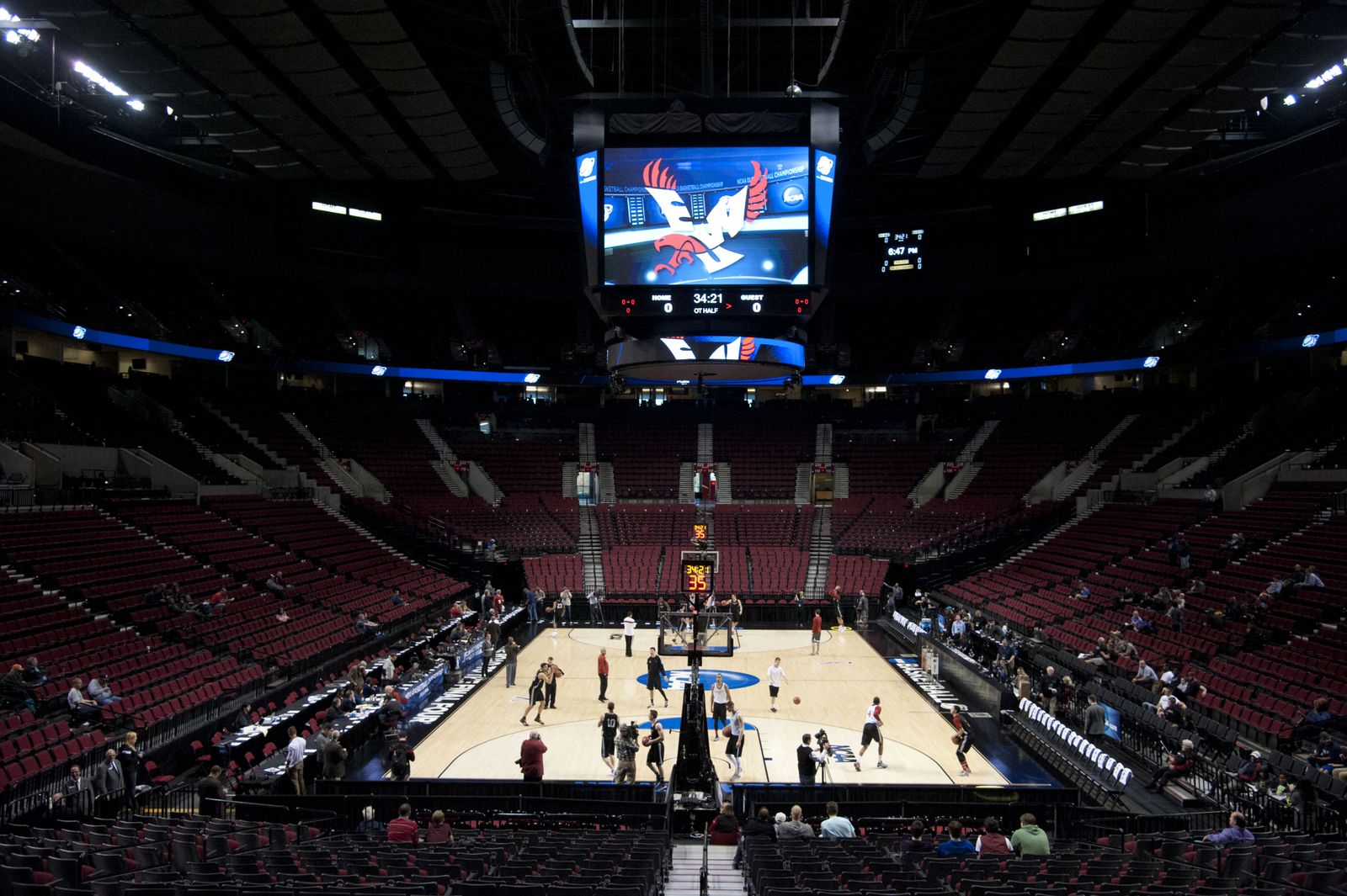 Eastern Washington University has their practice session, March 18, 2015, in Portland's Moda Center. The Eagles will face Georgetown in the second round of the 2015 NCAA Men's Basketball Championships on Thursday evening.