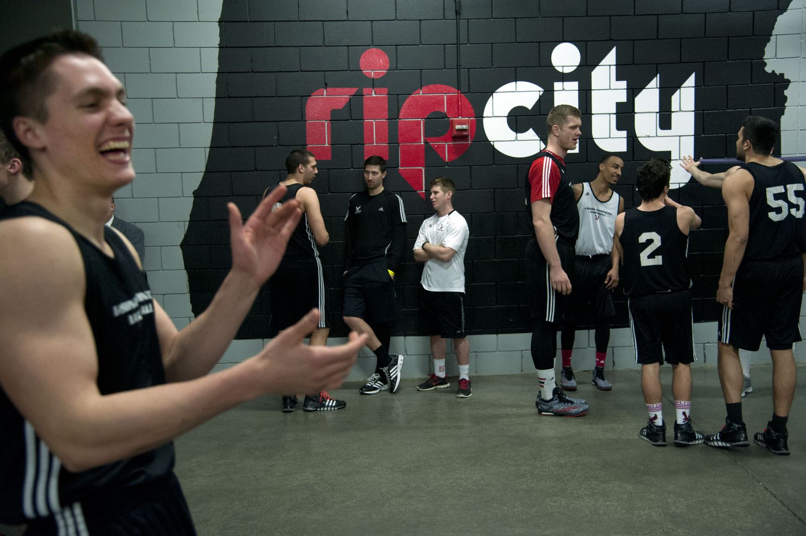 EWU’s Will Ferris laughs it up before the team’s practice session, March 18, 2015, in Portland’s Moda Center.