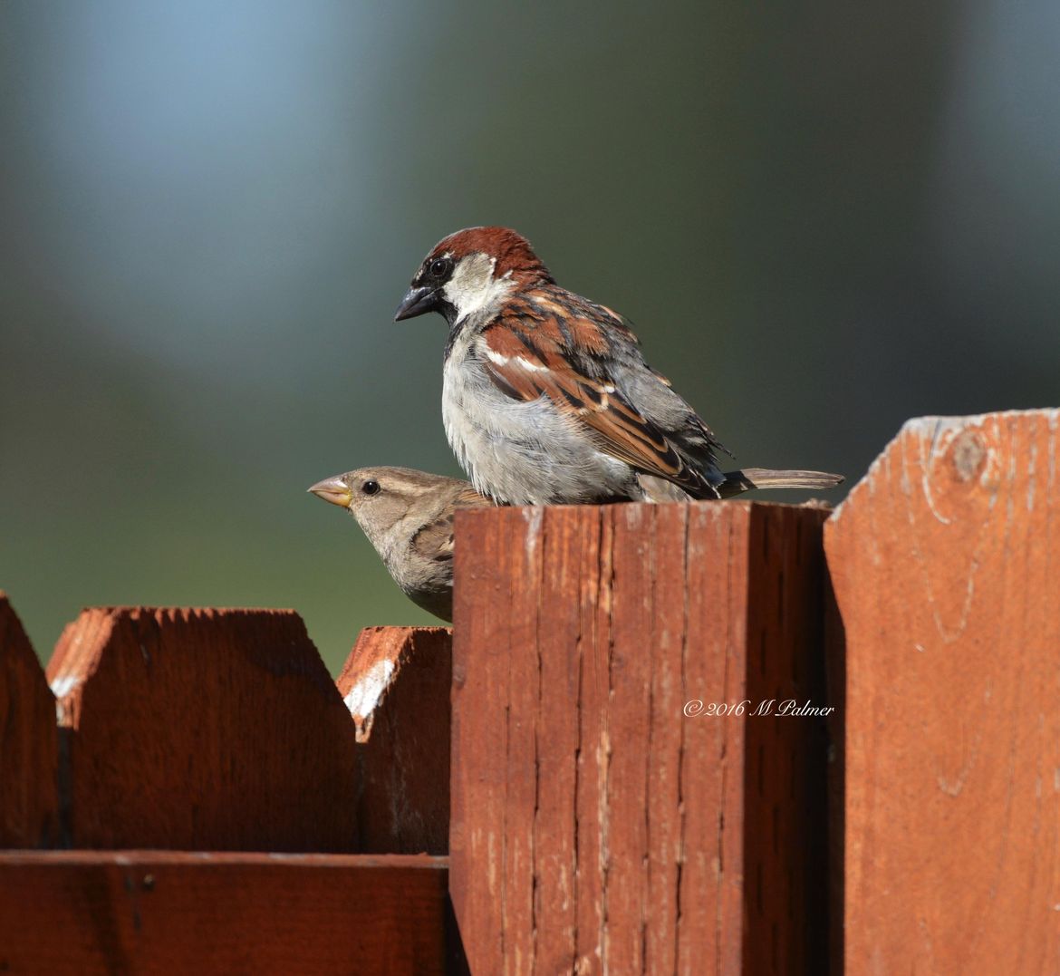 Enjoying back-yard birding, male and female house sparrow (May 29, 2016)