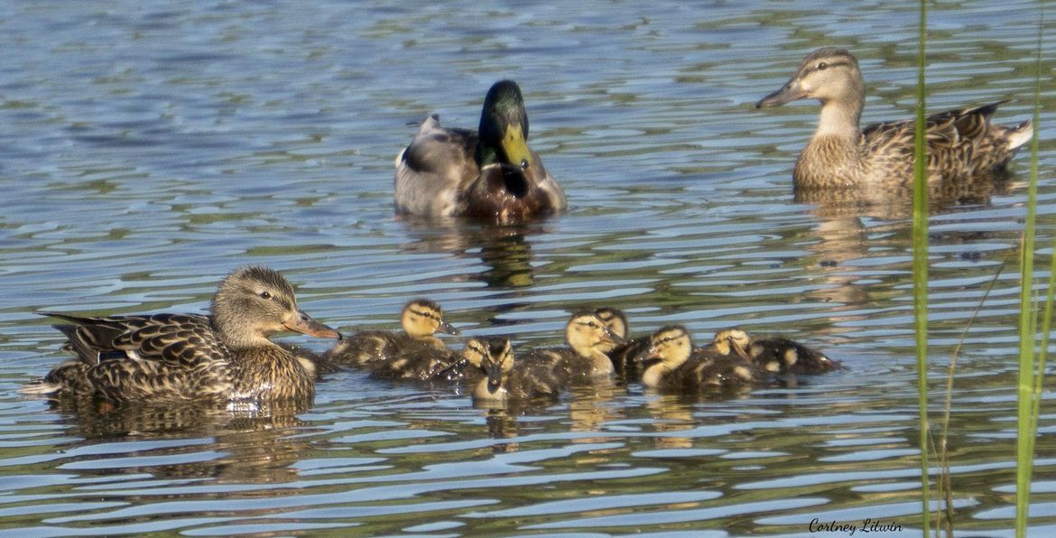 Mallards surround their ducklings at a pond on the South Hill on Sunday. I saw two sets of families.