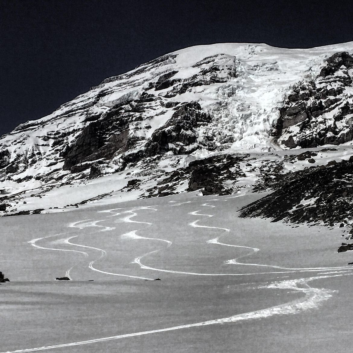 Maks Page enduring the long walk up Mt Rainier to get October checked off his list for "Turns all Year"