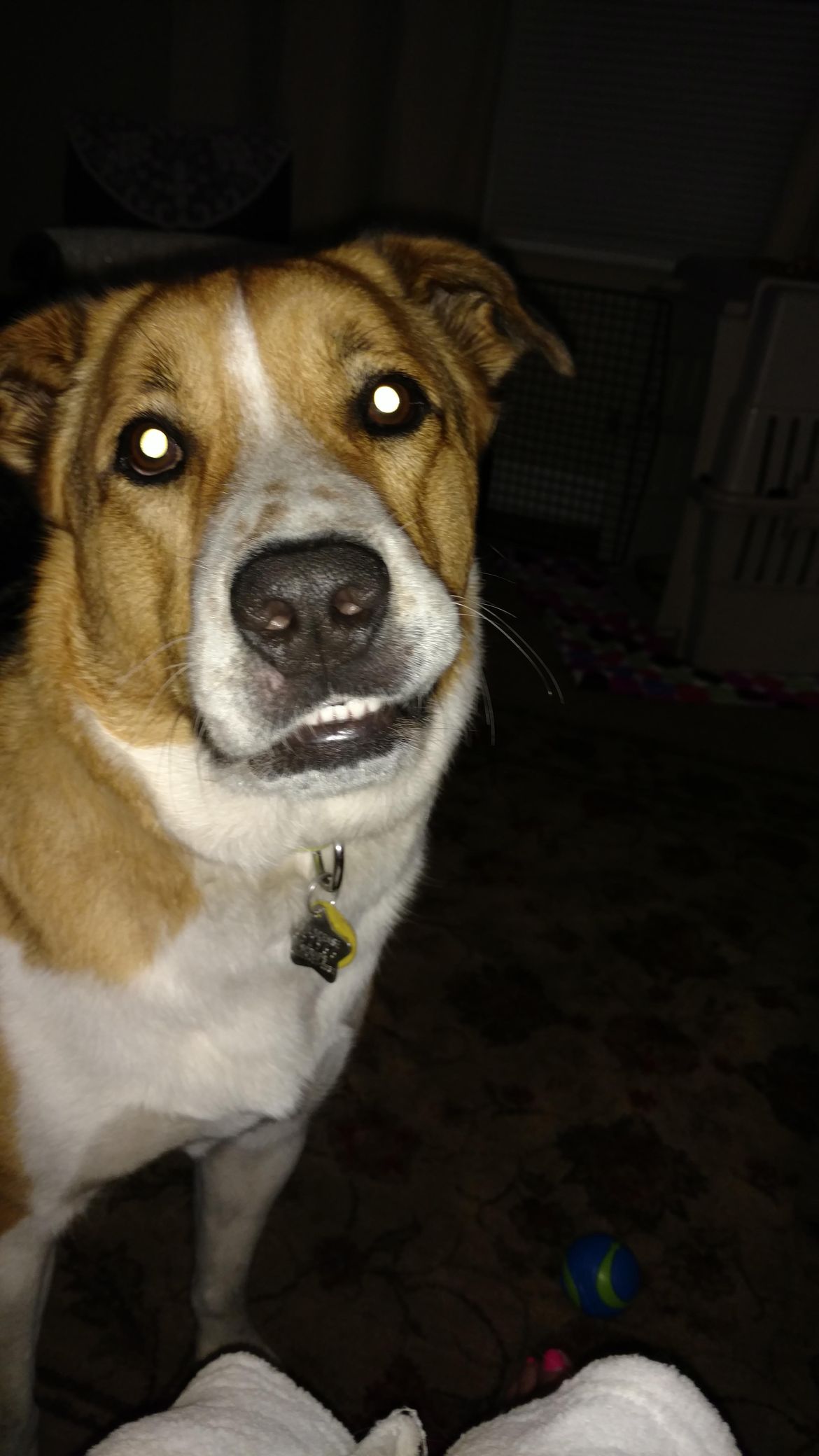 This is Arya taken at our home in Spokane Washington. She is the best dog in Spokane because she's met all the big celebrities, she met Tom Sherry ice skating on Liberty Lake, and the Zags' Nigel Williams-Goss while being a good dog at Perry Street!