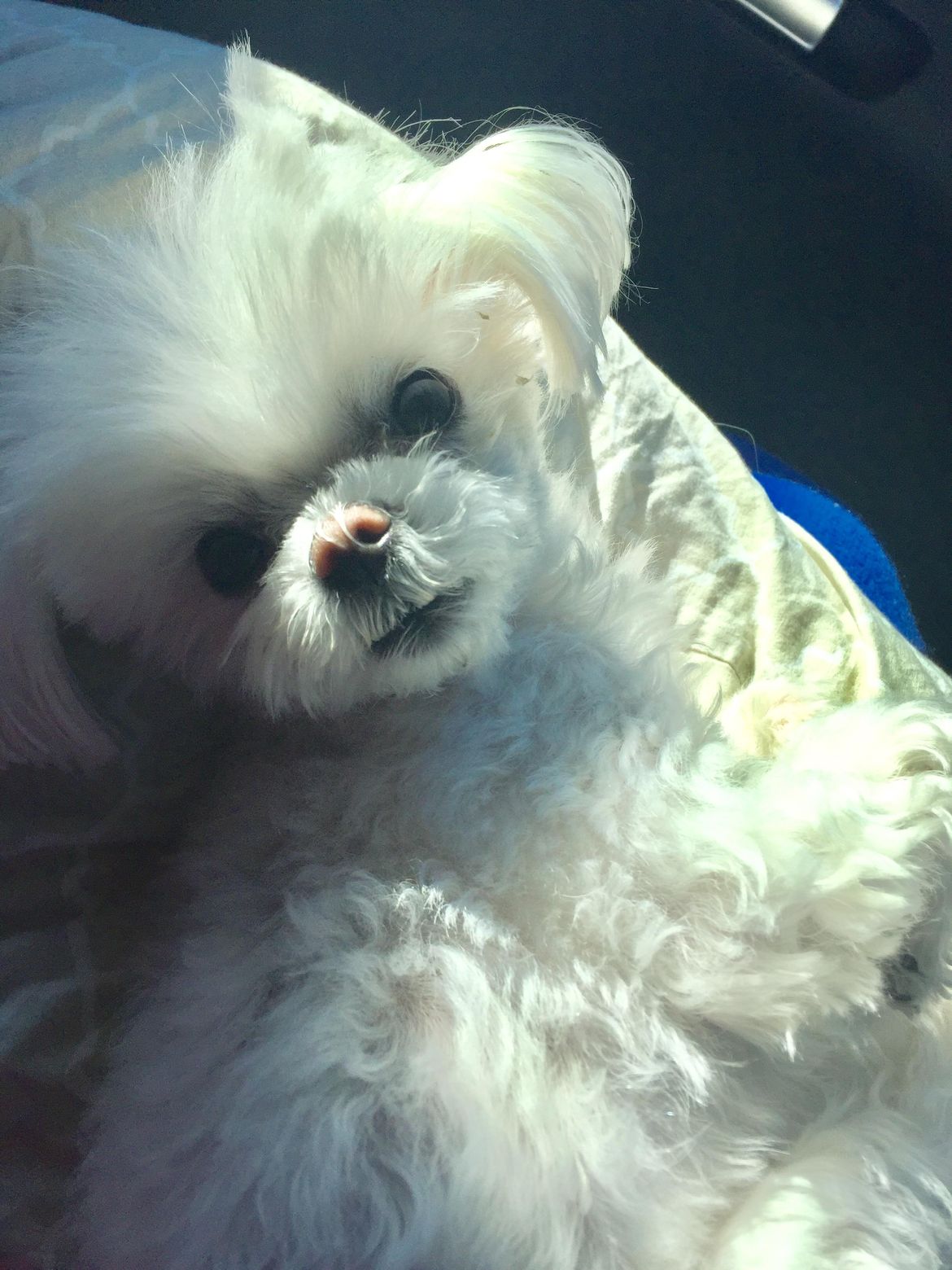 Sometimes Hennessy gets to come to work with me and gets attention from all the ladies - here he is in a state of bliss from all the love. :-)