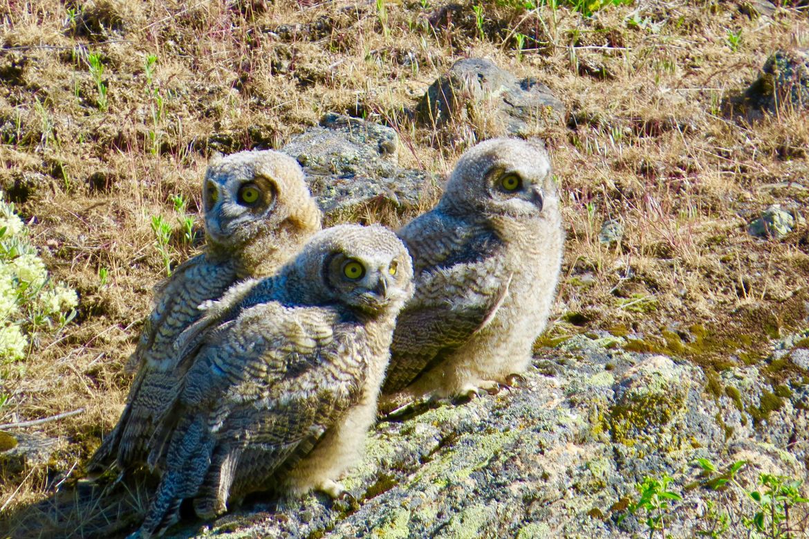 Three young Great-horned Owls at Saltese Uplands on Wed., May 27