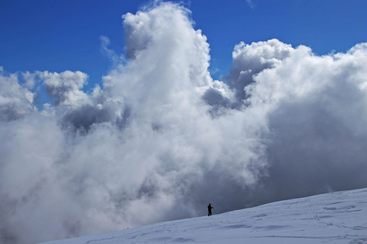 02-03-18 Snow Hoodoo 'Volcano' atop South Baldy WA, Pend Oreille River Valley enshrouded in Fog below and Calispell Peak Distant