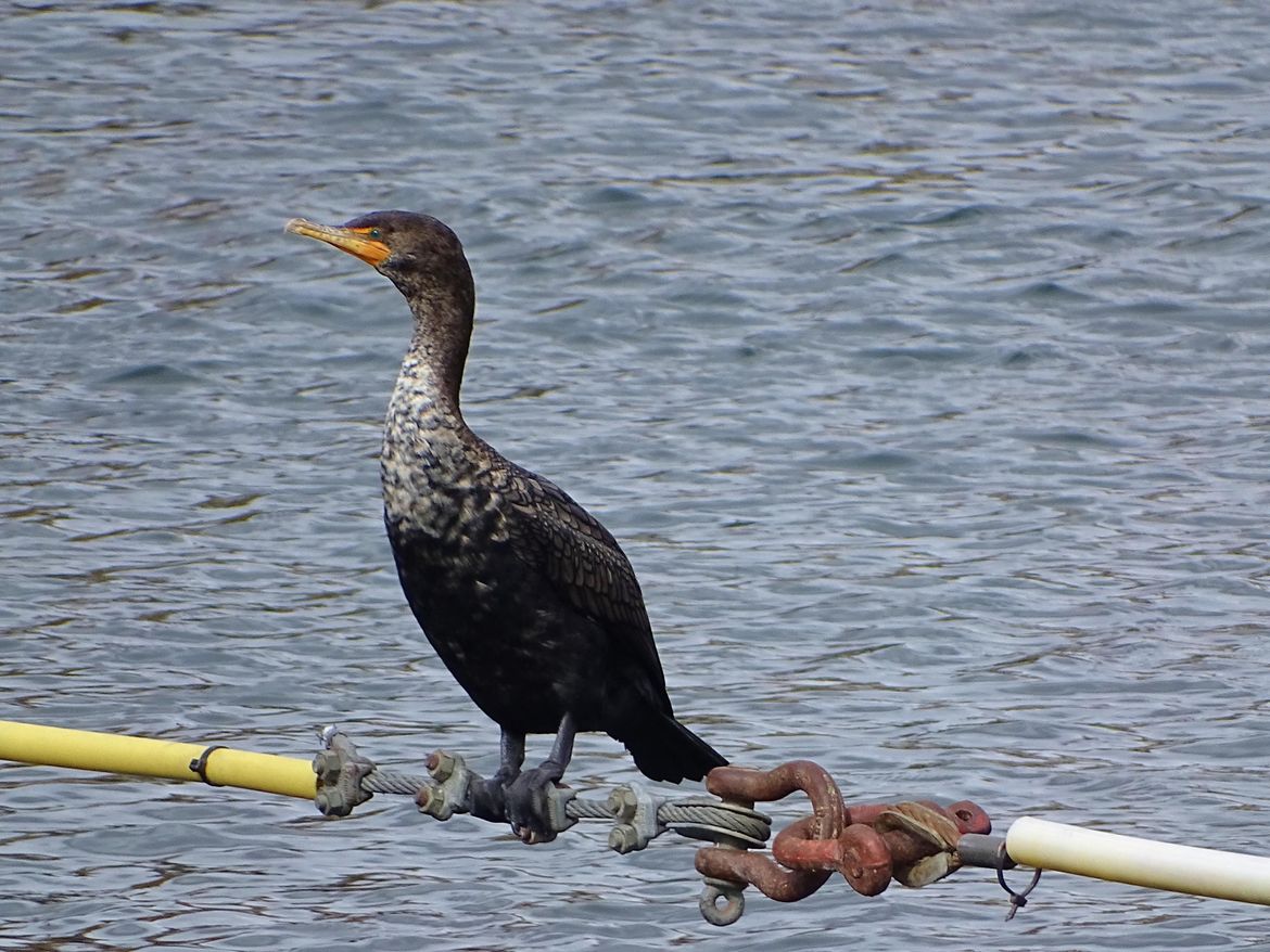 I had to ask what this web footed bird was. It is a Cormorant and really belongs near the ocean. There have been 5-6 behind the dam in Riverfront park on the caution balls and wires. Taken March 5, 2018