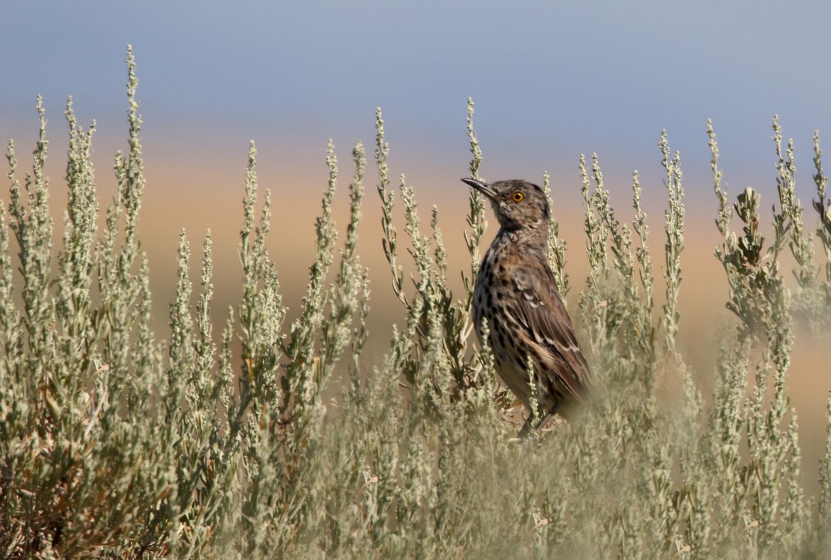 Went looking for birds that live in our open spaces I found a few. This is a Sage Thrasher as the name implies they live in the sage brush kind of a plane looking bird except for it's eye and they sing a song that goes on and on they sit on top of the sage brush and then drop to the ground then pop back up again. Taken west of Davenport W.A. 8 2 2025.
