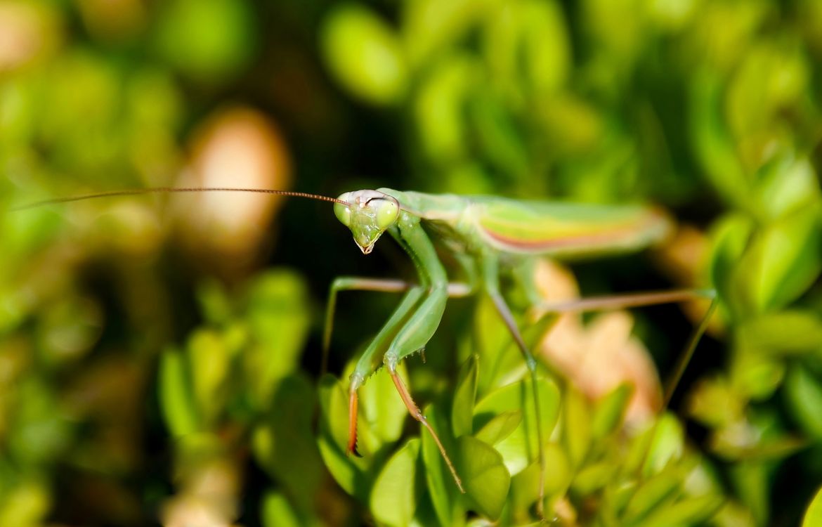 Praying Mantis clutching a ladybug in one of its forelegs.